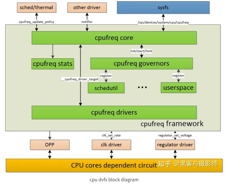 The interface does not cover Dynamic Voltage and Frequency Scaling (DVFS) or device power management (for example, management of peripherals, such as GPUs). System Control and Management Interface (SCMI) does provide standard interfaces for this purpose.